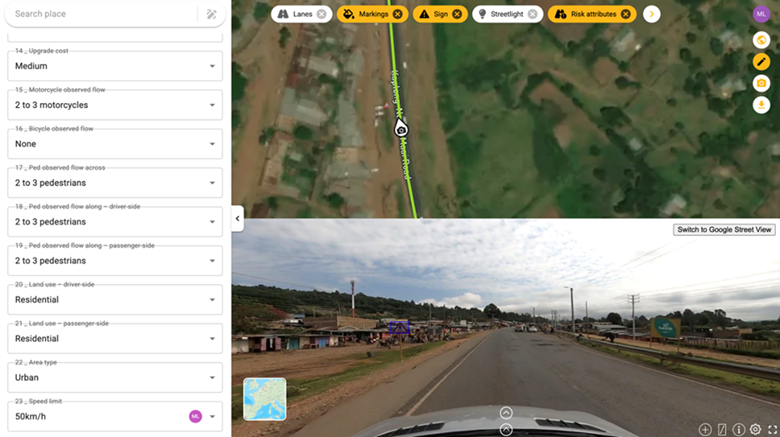 Avec l'approche traditionnelle de codage des routes, AssetMAPPER permet à l'utilisateur de coder manuellement les attributs de la route à partir de vidéos sur 360°, et ce, à l'aide d'une interface de navigateur Web conviviale. Combiné au cadre de l'AiRAP, AssetMAPPER permet à l'utilisateur de mettre à profit les données en source libre et un système avancé de vision par ordinateur pour analyser les vidéos sur 360°, ce qui accélère le codage automatisé de 20 attributs routiers.